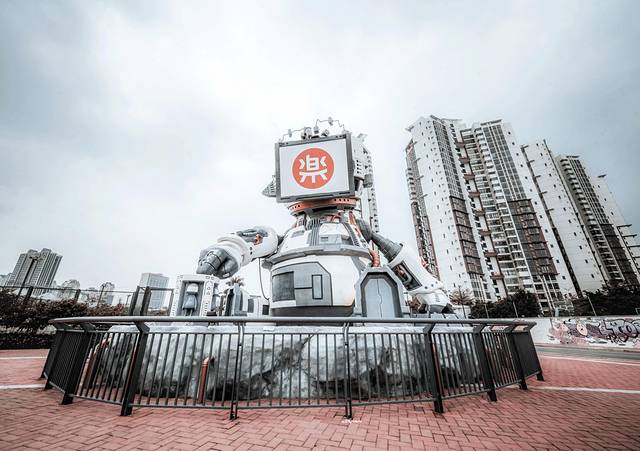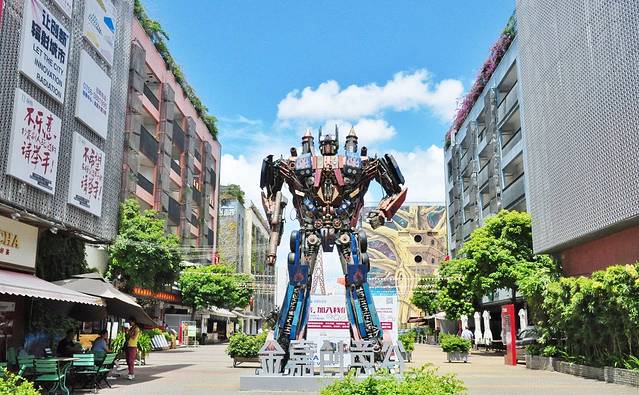入口的擎天柱和大黄蜂模型标志着这里的年轻气和创造力。走进园区有一片涂鸦墙,可以看到许多出来游玩的年轻人都喜欢在这里拍照打卡。园区内引进各类品牌企业和创意产业遍地开花,网游动漫、影视音乐、创意设计、文化传播、珠海手信、互联网+……应有尽有。
