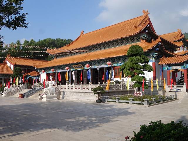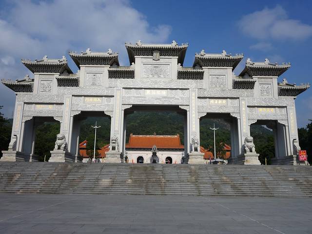 寺庙坐落于香洲区凤凰山麓下,占地总面积约12万平方米,是一座观世音菩萨应化显圣道场。其前身为清朝的怀庵古寺。清晨入寺,听梵音驻唱,观僧人诵经,前方大雄宝殿的肃穆森严让人沉静,寺庙也会给每人提供三支开光檀香和免费的瓶装大悲水。黄墙黛瓦,飞檐峭壁值得细细观赏,佛像雕像的造型精巧,慢慢品味就是一场艺术的盛宴。对寺庙文化不感兴趣的游客,在这里纯粹地欣赏建筑也是一件趣事。