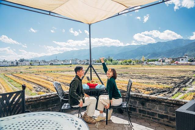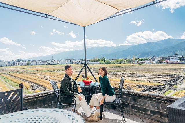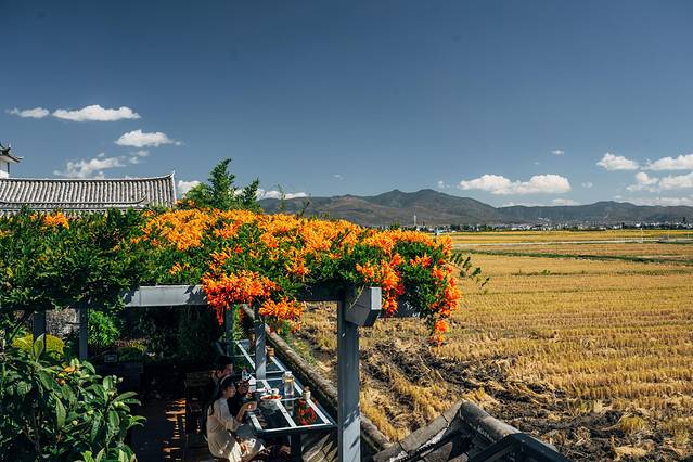 在喜洲古镇,慵懒的慢生活随时随地都可以实现。现在已过秋收,所以不见金黄稻田,但依旧抵挡不住这里的美丽。随便找一处咖啡厅坐下,在田野放空都是美好的享受。(TIPS:如果想要拍出大片,建议是10点之前,要趁游客来之前赶到哦!或者直接预定稻田旁的酒店,足不出户就可以轻松get绝美稻田大片!)