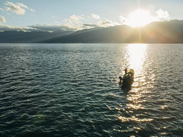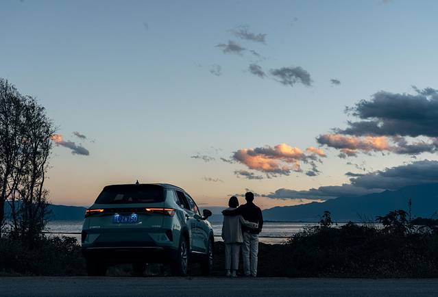 不过,别光看白天风和日丽,傍晚的洱海边其实有点冷,但没办法,想拍到唯美的夕阳,就得在冷风中苦等。我一个大男生还好,榛美被冻够呛,还好我机智,提前用蓝牙手机钥匙远程操控打开并调好了车内空调,这样等我们进入车内,就能迅速暖和了~