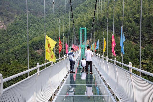 景区最刺激的体验项目要属玻璃天桥了,这条玻璃桥的长度很长,连接着两座山之间,低头望下去,完全是悬空的,而且玻璃真的很干净,走到栈道的尽头 ,会给你带来更惊险的体验。
