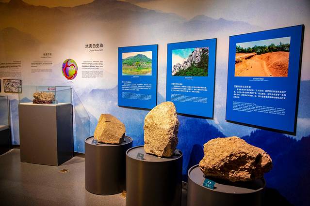 刚刚走进博物馆就是地球奥秘厅,从地理学科的角度为我们介绍了 天柱 山千百年来的来沧海桑田的变迁,北纬30度从来都是一个神奇的地方,这里有对 天柱 山的最有特色的花岗岩超详细的介绍。