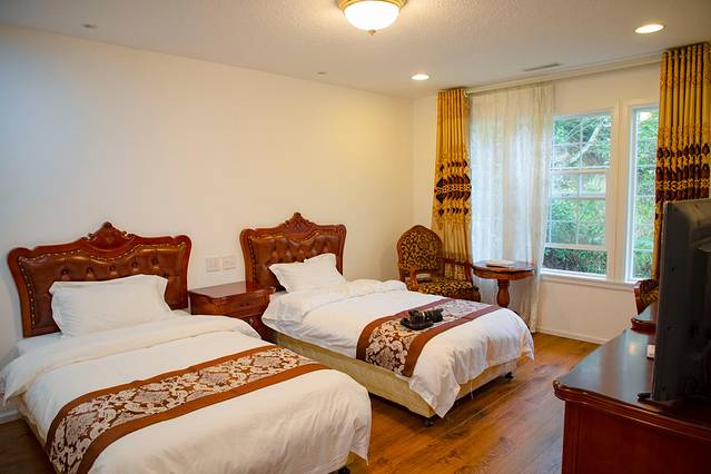 湖边木质的别墅特别的有感觉,平日在城市工作繁忙,周末到自然中度假,住在风景优雅的别墅中亲近大自然,这样的生活方式谁会不爱?别墅的装饰为欧美简约风格,虽为别墅但都有各自独立的房间,特别适合家庭出游。