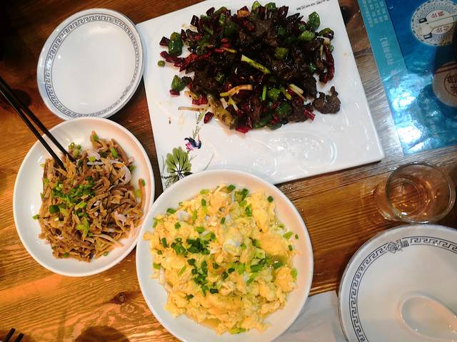 古镇桥头的小饭馆点了三个小菜吃吃,味道不错,只是我们三人吃了人家三盘米饭,没有办法北方人就 是吃的多