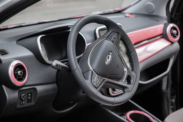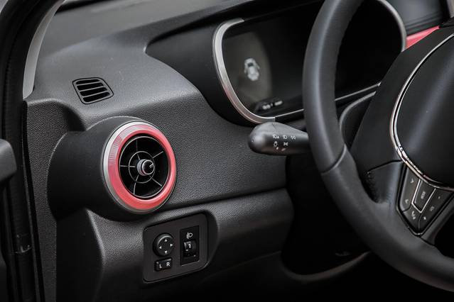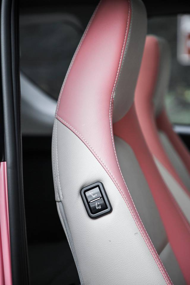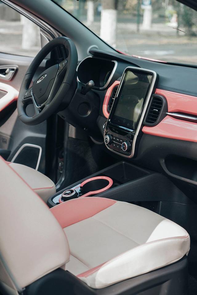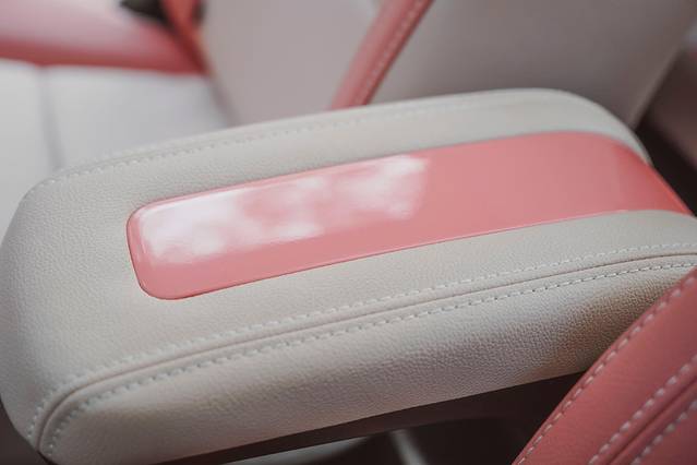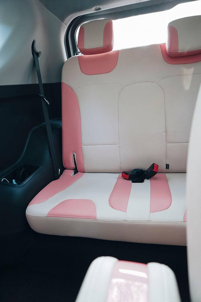 妈妈惊讶于小蚂蚁使用的竟然采用了皮质座椅,双缝线工艺也是把高级感拉到满格。我这台小蚂蚁选择了流樱粉双色内饰,色彩上与车身颜色相呼应。浅色内饰不仅视觉上有增大空间的效果,也更加活泼俏皮。
