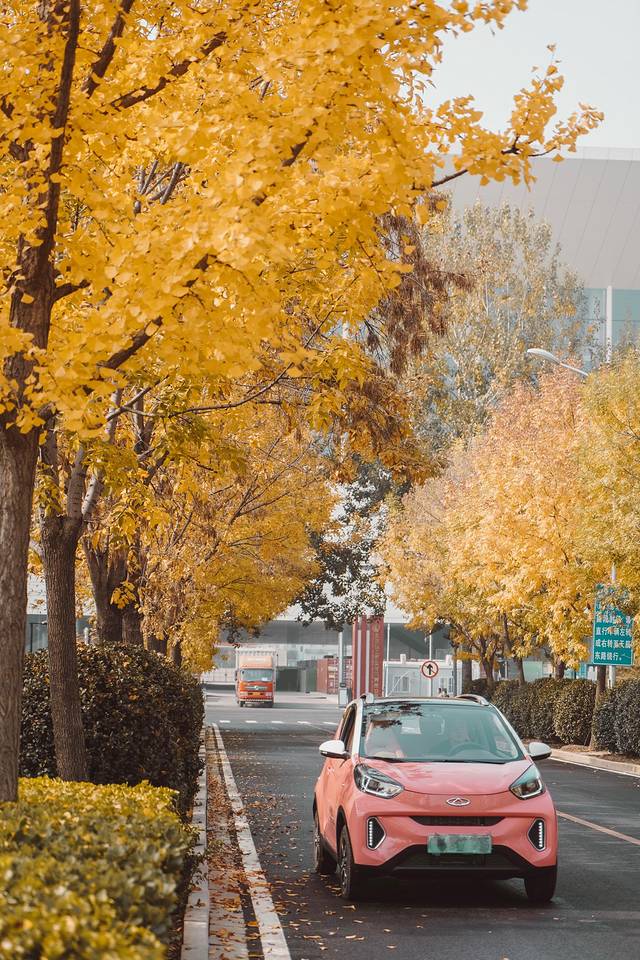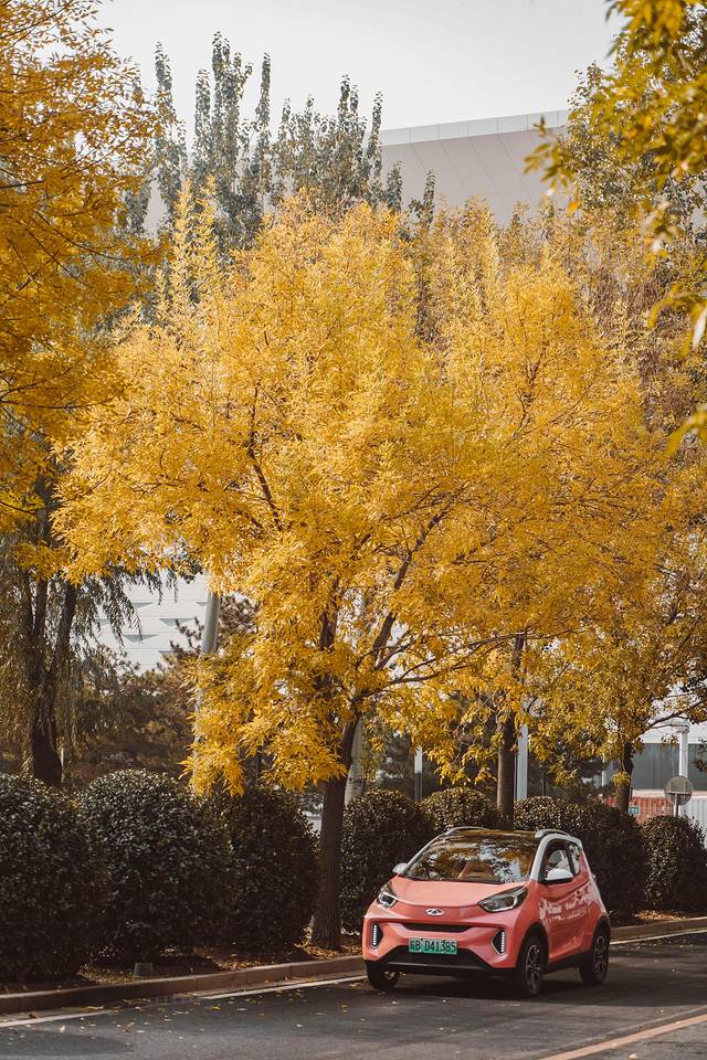 当流樱粉的小蚂蚁遇到金黄的银杏叶,还没进到公园里,我就已经随手抓拍了这么多好看的照片了。上面这张,有没有注意到小蚂蚁的花轮毂特别好看