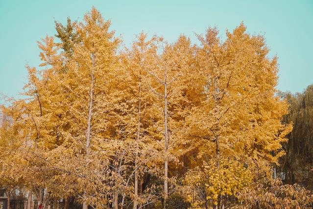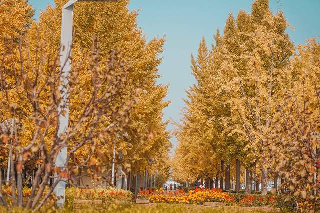 快看,当远远的看到路两边都是成片的银杏树时,奥林匹克森林公园就快到啦!这条路上找不到一丝秋天的萧瑟感,反而有种温暖、安心的感觉。