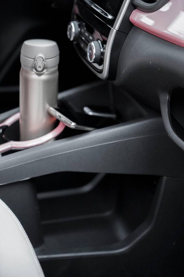 别看小蚂蚁的外观看起来小巧迷你,但实际上它的内部空间规划的非常合理,水杯架、储物格一应俱全,我们女孩子出门总是要零零总总的带很多随身小物件,最怕就是没地方放。小蚂蚁可谓是想我所想了,像是手机、水杯,还有行车过程中可能会用到的物品都有自己的专属位置,车里放很多东西也不会显得凌乱,可谓是麻雀虽小五脏俱全了。