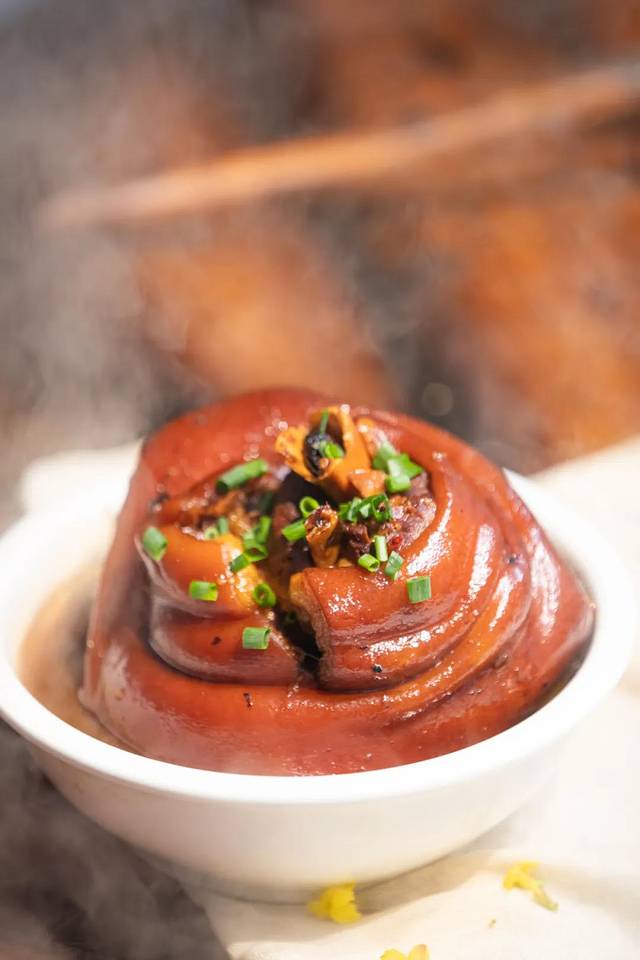 加入十八种调味料,经过数小时炖煮,肥而不腻,酥而不烂。色香味俱全,且有吉祥寓意,令人回味无穷。