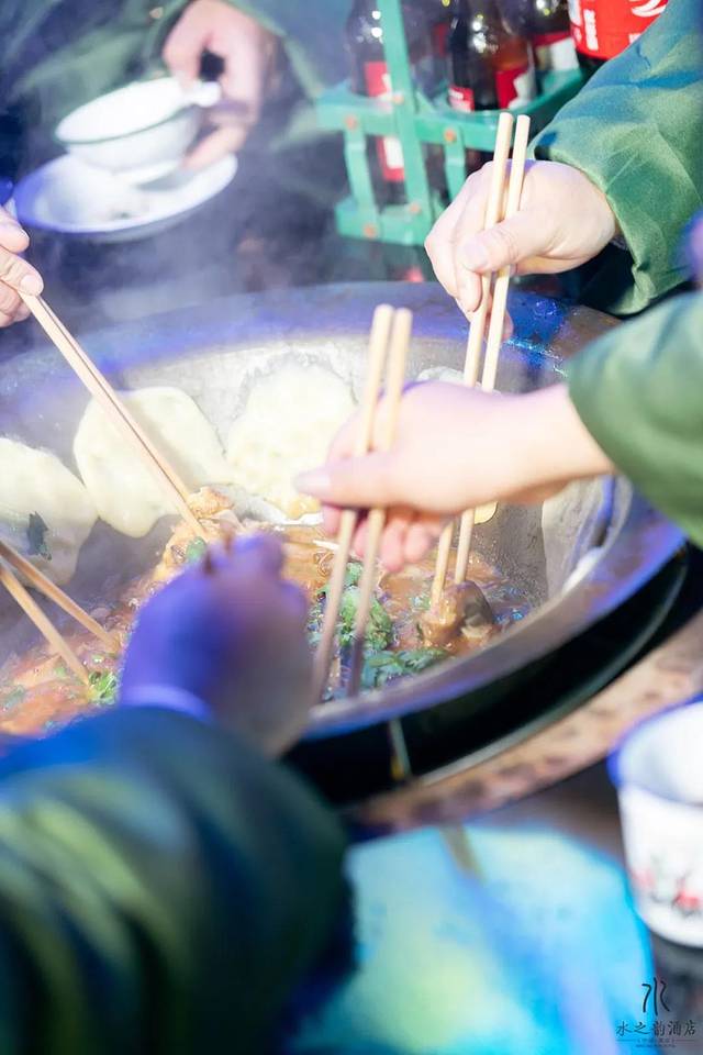 绿大衣、陶瓷杯、长筷子......熨帖了味蕾,也妥贴了仪式感。十分接地气的吃法,既“朴实”又“豪华”。
