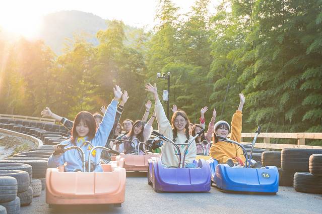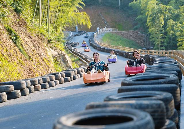 这是从新西兰引进的项目哦!整个项目一共分为三条赛道,分别是竹海、森谷以及天际线路,目前开放了一线路,全长约有3.2公里。