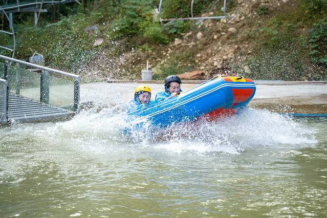 穿好雨衣,约好同行的小伙伴,两个人一艘皮筏艇,让我们一起乘风破浪冲刺吧。最惊险的是720°连环大回转,那种略微失重的感觉,仿佛真有种要被甩出去的既视感,让我们一起尽情尖叫吧。