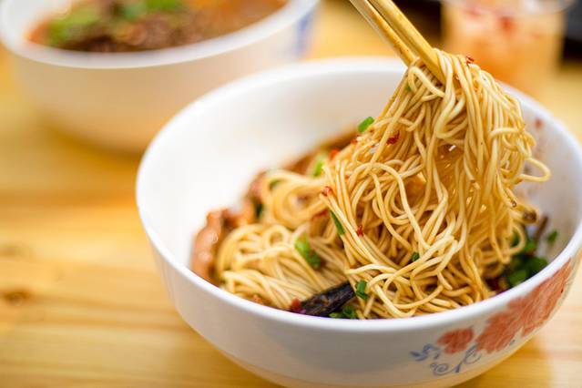 同样都是碱面, 湖南 的碱面不是像 湖北 那样的粗面,也不是 广东 的竹丝面的那种细面,我们 湖南 的碱面是口感刚好的那种细,吃起来也颇具韧性,吃起来淡淡的碱香味回味无穷。