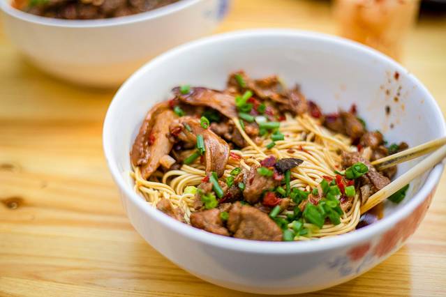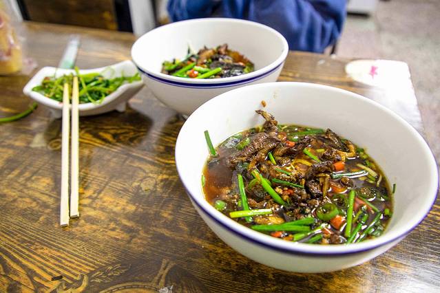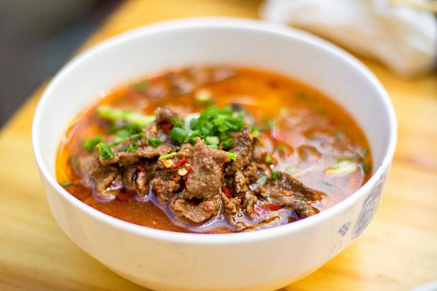 麻辣牛肉绝对是 湖南 米粉店里,最受欢迎的“码子。嫩白的鲜米粉或是劲道的碱面在热锅里焯熟,浇上滚热的高汤,铺上牛肉浇头,再抓一把辣椒,这一碗牛肉面简直销魂。