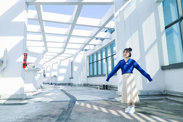 坐电梯到达顶楼,然后在步行上到 天台 ,天气好的时候,可以到楼顶感受 春日 的暖阳,洁白的颜色和颇具几何感的围墙,很难让人不爱上这里,达美美立方建筑的简约和规则感,是非常容易出片的地方。