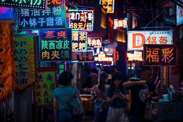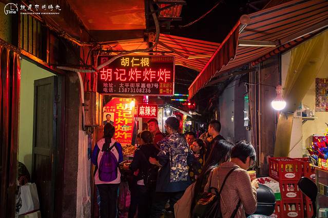 除了主街深邃的巷子里各类美食五花八门的打出自己的招牌,生怕从巷子口看不见他们的店铺,要问这些店子好吃么?说不上好吃也说不上难吃,你说它坑游客?也没有~其实类似这种巷子光顾它的人除了游客更多的是半夜刚从酒吧蹦迪出来的年轻人们。