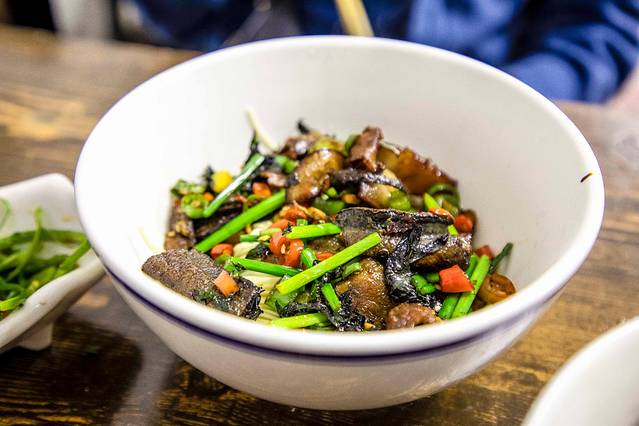 能左右一盘牛肉口感的就是火候,时间短了没有熟,时间久了影响了口感,满盘皆输。也许只有下厨做过炒牛肉的伙伴,才能明白这恰到好处的感觉有多难,仔细观察这道菜上桌的时候牛肉还会有一丝血丝,经过30秒大火的爆炒,再加上上桌后不断的小火加温才成就了这道招牌的小炒黄牛肉 。