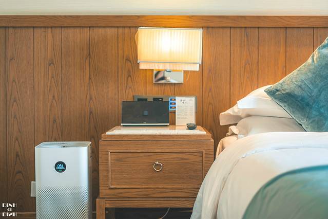 房间里超级人性化的配备了消毒柜,用的杯具都在消毒柜里消过毒的,床头还有空气净化器,另外还配有很多消毒湿巾,在疫情期间,这波操作真的太贴心了。卫生间的电吹风是戴森的,点了外卖,外卖小哥进不来,有机器人帮送到门口,太智能,太有爱了~