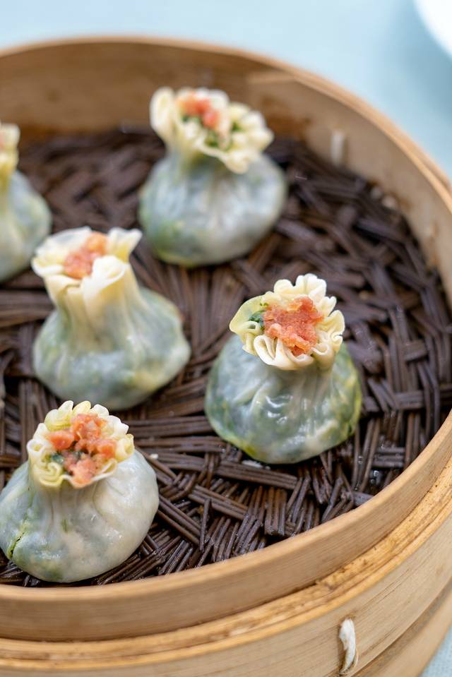 翡翠烧麦:皮薄如纸,馅芯翠绿,内陷的青菜会根据时令更换,清清爽爽;