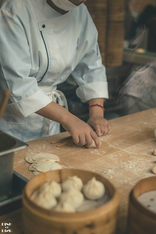 透明的厨房,师傅正在制作汤包