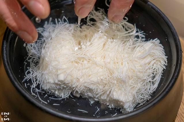 刀工了得,软嫩清醇的文思豆腐羹也是一道功夫菜。大师傅现场表演切文思豆腐,就是一盒很普通的内酯豆腐,在大师傅的刀下,5分钟的时间,就可以放在 水里 开花了,但是为了这5分钟的刀工,不知道师傅要联系多少年呢~