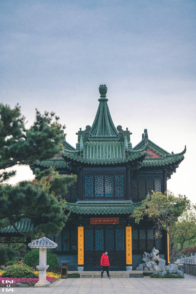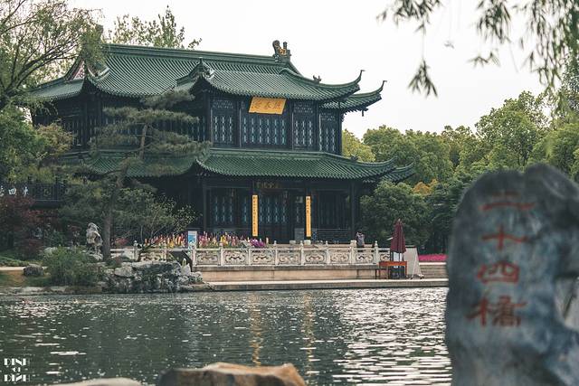 “青山隐隐水迢迢,秋尽 江南 草未调。二十四桥明月夜,玉人何处教吹萧。”这是唐朝诗人杜牧留给我们的千古绝句。进入景区我一直在找二十四桥到底是哪座桥,知道我看到这座用汉 白玉 砌成的单孔拱形石桥,据介绍此桥全长24米,宽2.4米,两端各12级台阶,两边各24根汉 白玉 雕柱,高、宽各2.4米,与桥相关的数据都和24有关系,难道这就是叫二十四桥的原因吗?桥东有贴壁 黄石 假山,西有熙春台,再现了唐诗中的诗情画意。