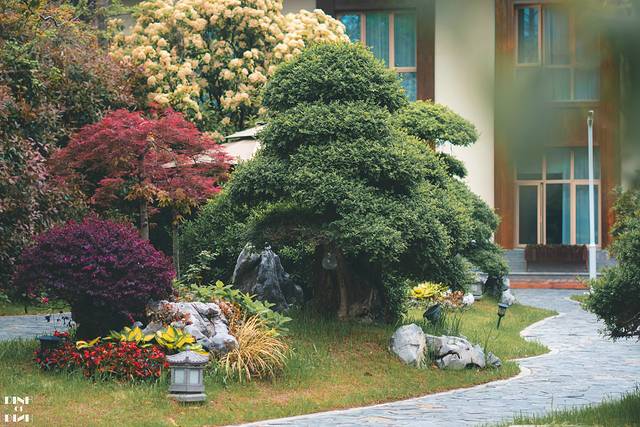 还有一大片的名贵盆景,都修剪得很整齐,都有一个奇形怪状的根,以及像云朵一样的枝叶。