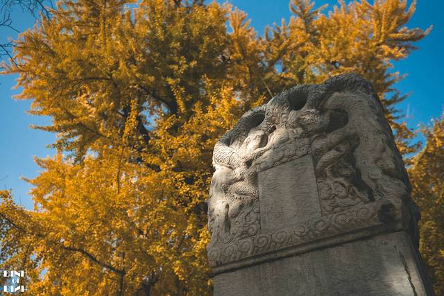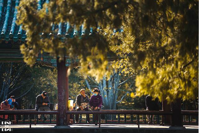 银杏:东门入园后往祈年殿走,右手边会路过一排银杏,拍照时才渐渐绿变黄,还能黄一周的样子。