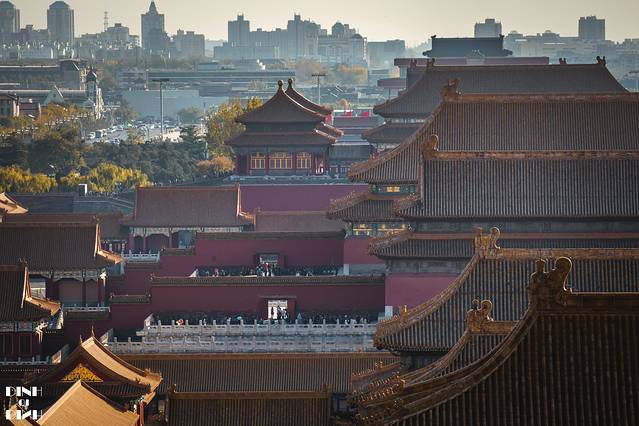紫禁城有9999间房间,可见其的奢华,站在景山看到紫禁城,不是一个大气奢华就能形容的。古代的宫殿和远处的现代建筑一对比,冲突感强烈。看了很多次的《末代皇帝》的结尾,溥仪回到紫禁城也要买门票一样,冲突感强烈,也预示着一个更新更好的时代的到来。