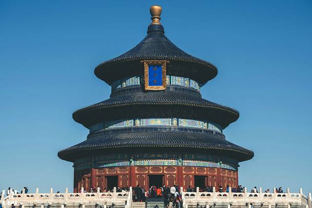 蓝色的瓦象征着蓝天,和紫禁城的黄瓦是明显的对比。天坛的主要功能就是祭天,所以蓝瓦是十分应景的。