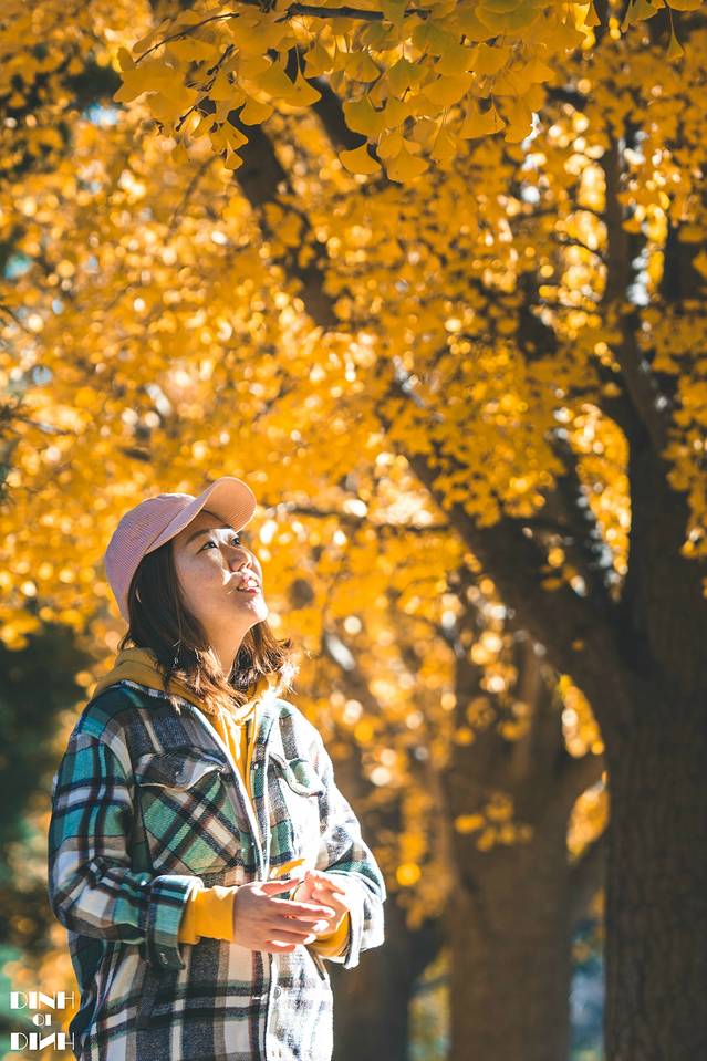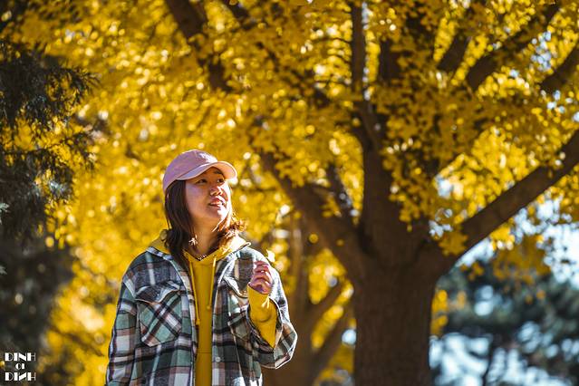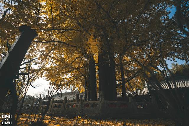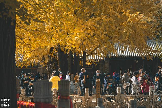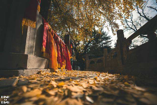 一进下车,感觉这个寺院都挤满了人,想拍个和银杏的合影,只能找个角落仰拍来,再抓一把落叶,完美~