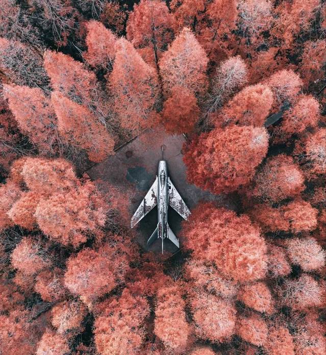 歼-6为何出现在这里已不得而知。昔日英姿尚在,倒成了大家不错的拍照背景。带上无人机,在上空更是可以一览全貌。不过要注意的是,退役军事装备大多只能仅供参观,请勿爬上飞机哦!