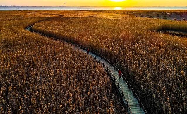 相对来说,位于崇明岛最东端的东滩湿地公园,上海人自驾过去更方便一些,长江隧桥下来再开20分钟左右就能到湿地公园的入口。无边无际的滩涂上布满了芦苇,各项设施也齐全,划船、露营、垂钓都有,可以带上露营毯,租辆自行车慢慢骑行逛逛,累了就找个地方歇一歇。