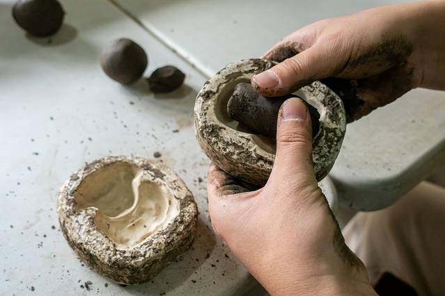 我们第一步就是将一坨黑泥在手中搓圆搓光滑