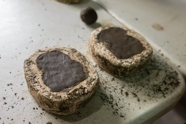 因为原本的黑泥比较潮湿,揉一会就沾了满手的泥
