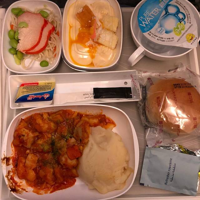 第二餐。。不得不说我真是对阿航期待太高了。。。。餐食真的难!吃!到!爆!(除了甜品)真的是还不如俄航捂脸小蜂
