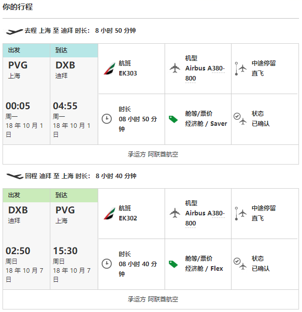 作为土豪航空的阿联酋航空,一直都想感受一次,但旺季人均1w+的价格始终烫手,终于在出行前7个多月时看到了有史以来的最低价:人均7000,可退改,时间也非常合适!必须拿下!