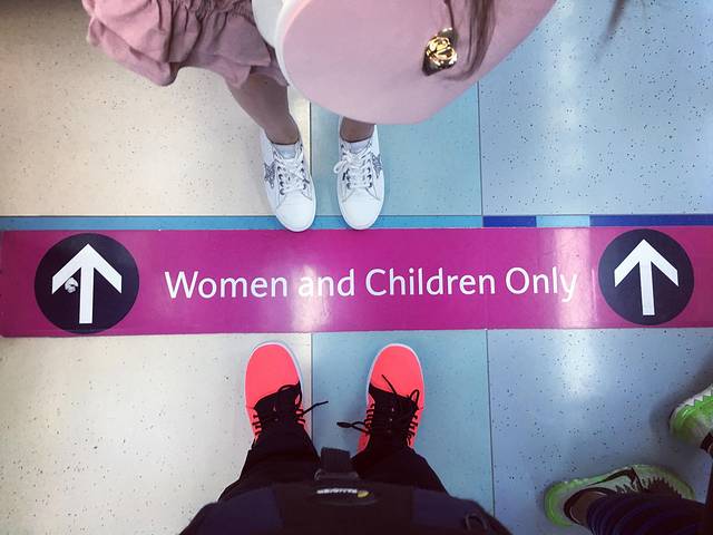 迪拜地铁的第一节车厢是金卡专用车厢,单独刷卡才能进入,第二节是妇女儿童专用车厢,我和小爸之后每次坐地铁都喜欢站在这个边界坏笑小蜂