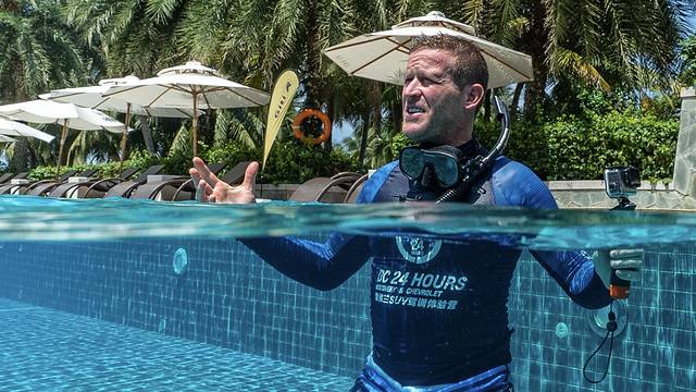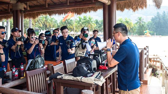 结束了室内理论课程学习,我们跟随Andy来到酒店泳池内,他亲身演示传授大家水下摄影技巧~