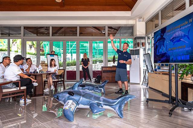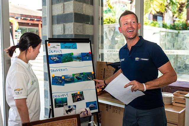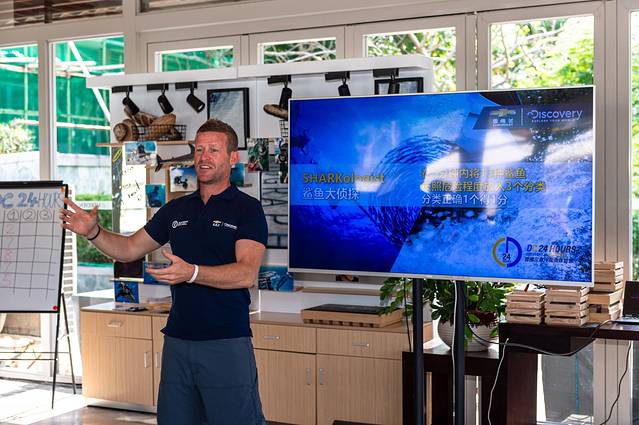 Andy在分享了《Shark Week》镜头背后与鲨鱼亲密接触的真实经历之后,给大家设立了几个关卡,所有的小伙伴被分为四人一组,以小组为单位完成任务,积分最高组可以获得神秘大奖喔~