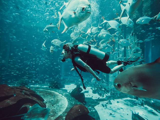 遗憾的是,进入高中之后,学业日益繁重,为了不影响学习,我不得不放弃游泳训练,安心备考。但我对水的热爱从来没有消退,退役之后,告别了熟悉的泳池,我开始对更广阔的海底世界产生了无限的好奇。从浮潜、到深潜、再到亚特兰蒂斯水族箱潜水……大海像是有无穷的魔力,吸引着我了解更多,探索更多。