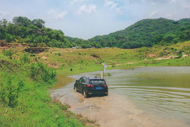 这一次试驾体验的项目包括30度倾斜路面、湿滑草地下坡、炮弹坑上坡、模拟穿越、泥潭脱困、长上坡、砂石路面、涉水路面等,模拟穿越丛林可能会遇到的路况。