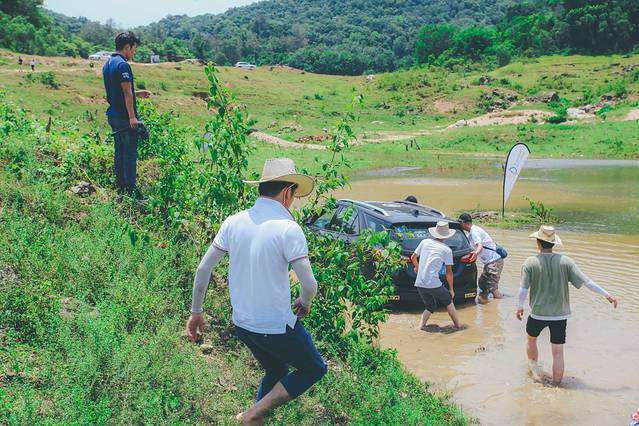 这一关可不是那么容易的哦,尽管雪佛兰的教官团队在穿越挑战开始前不断地测试地形情况,但当我们穿越时,水滩下的土质情况又与之前发生了变化。小伙伴在教官的指挥下稳步前进,但还是免不了陷车~陷车后的第一时间,驾驶员要保持冷静以及发动机持续发动,避免出现熄火的状况导致排气管水流倒灌,然后,等待救援就可以了~