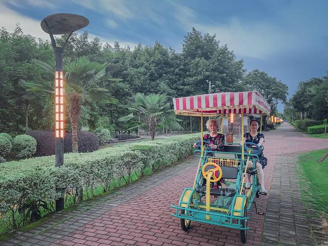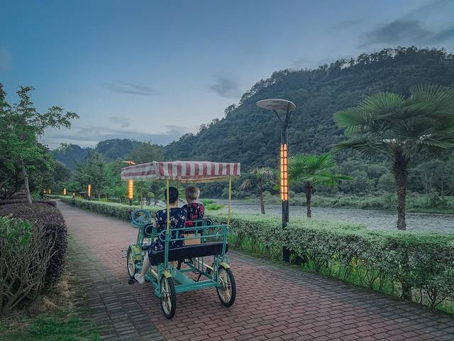 在酒店大堂可以租赁两人、三人、四人自行车,延滨溪漫步道骑行。