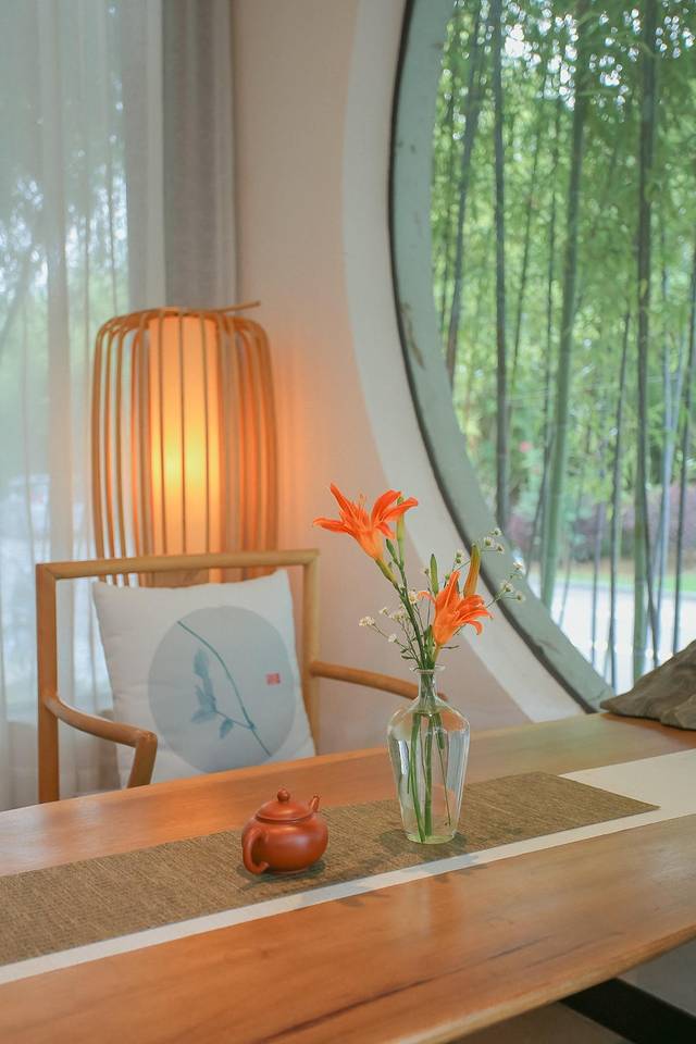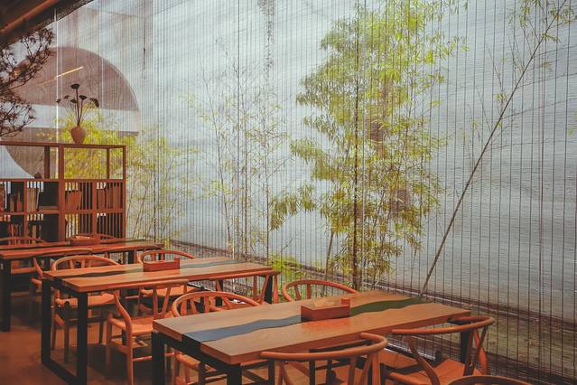 酒店一楼的餐厅提供健康的简餐,餐厅原木色的配色,与建筑、景观本身如出一辙,通透的玻璃墙让室内外景致更加融合为一,环境的内外互动,带来与自然共融的怡然。