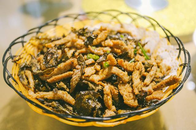 临走前,还不忘再打卡一家当地的网红餐厅——炊烟山房菜。尝了这一道当地特色的肉桂飘香。把肉和茶叶炒在一起做菜,大概也只有在与茶为伴的武夷山有了吧。
