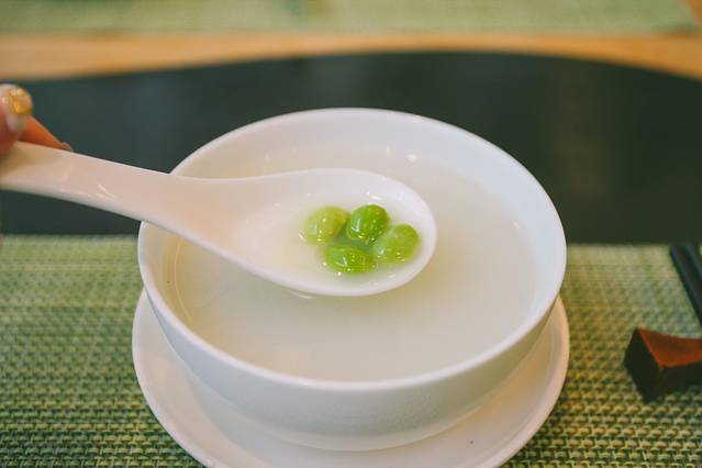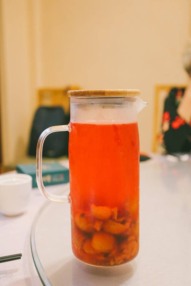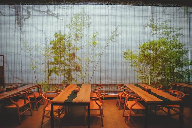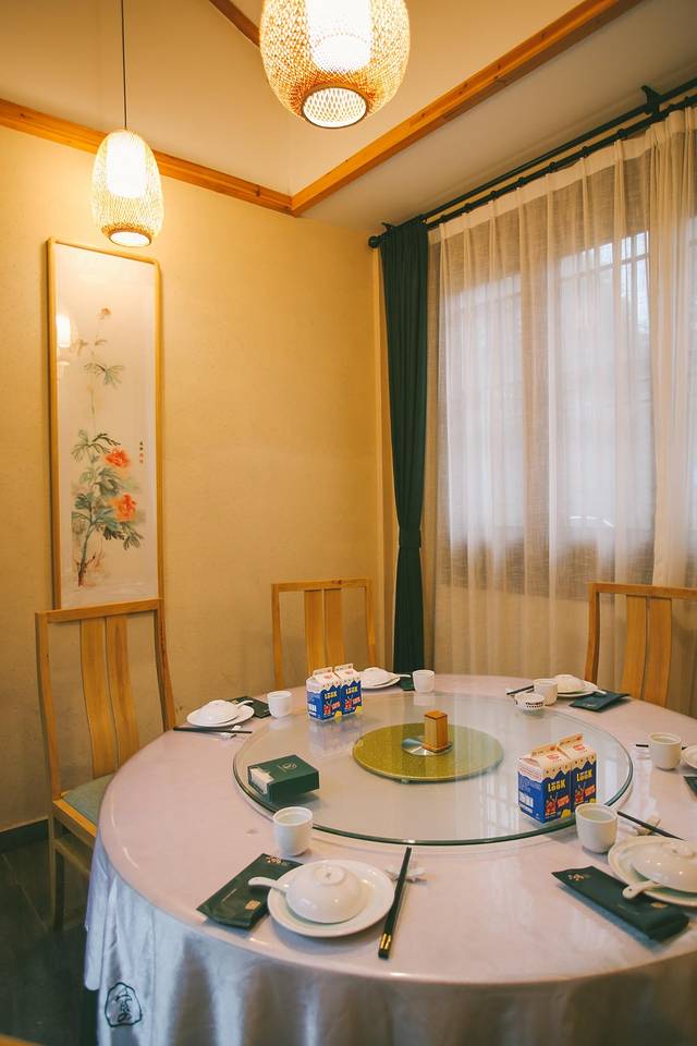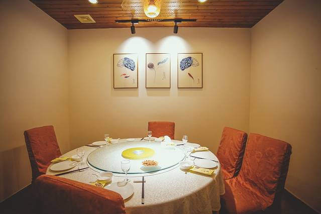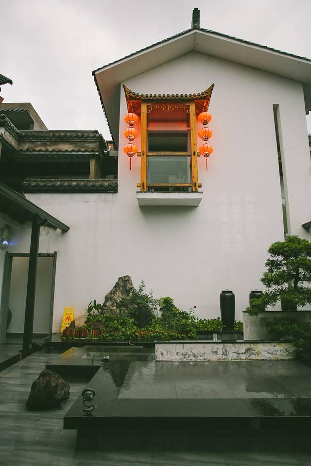 点完菜,服务员把我们领到预定好的包间,餐厅的一个个中式庭院错落有致,环境清幽。