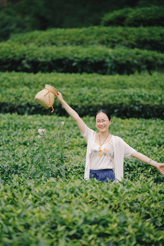 妈妈置身茶园中,乐开了怀,她大笑的模样好似回到无忧无虑的少女时代。