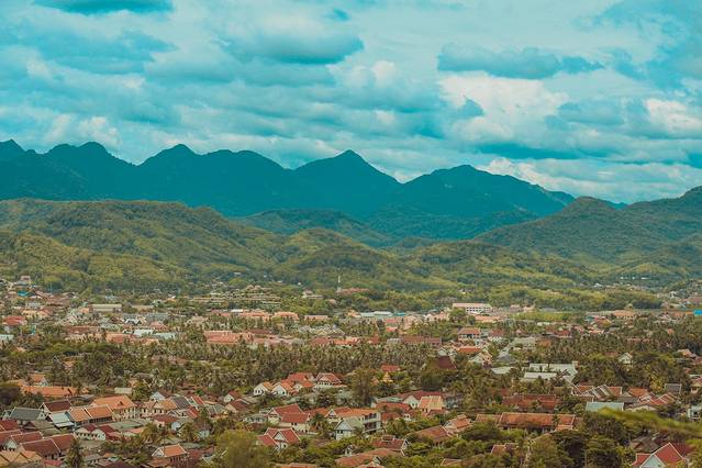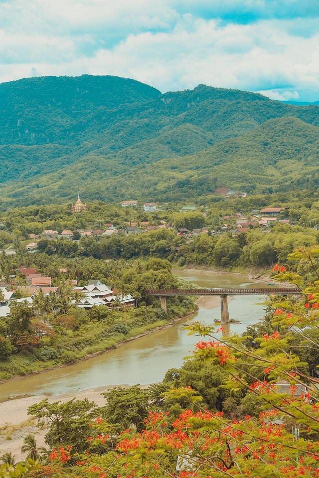 整个城市群山环绕,郁郁葱葱的树木掩映着寺庙、佛塔还有平凡的住家,这一切使琅勃拉邦的空气中充满了平和而又迷人的气息。