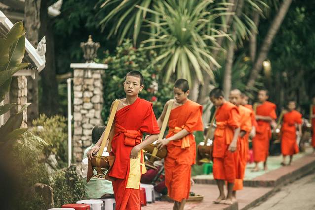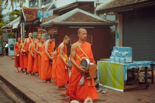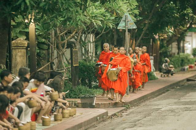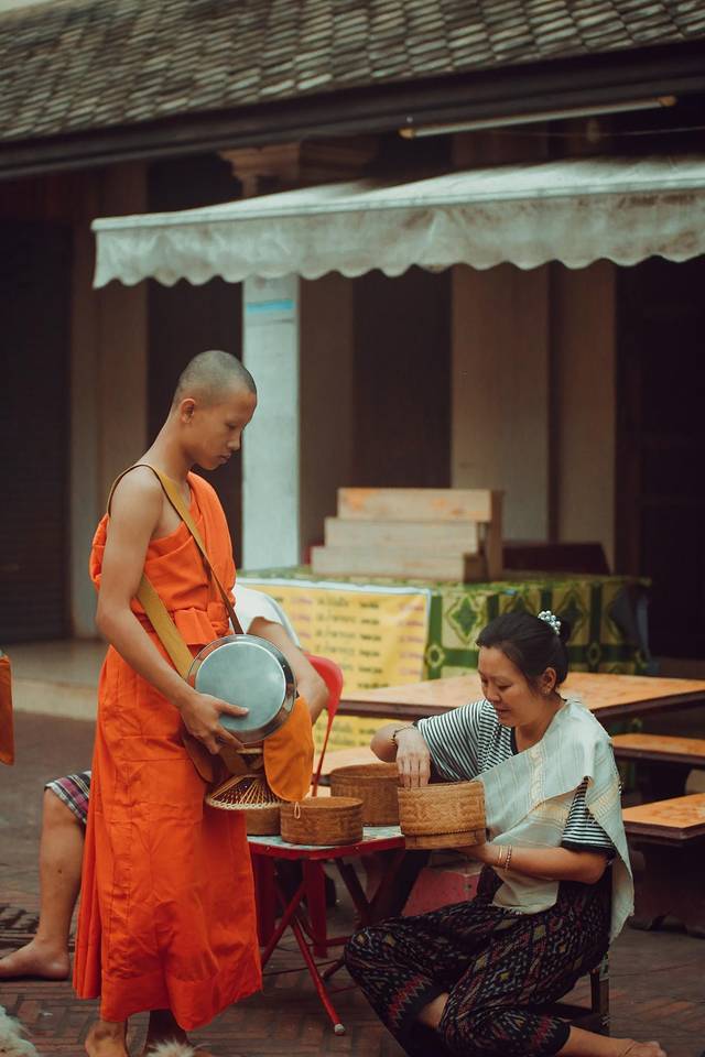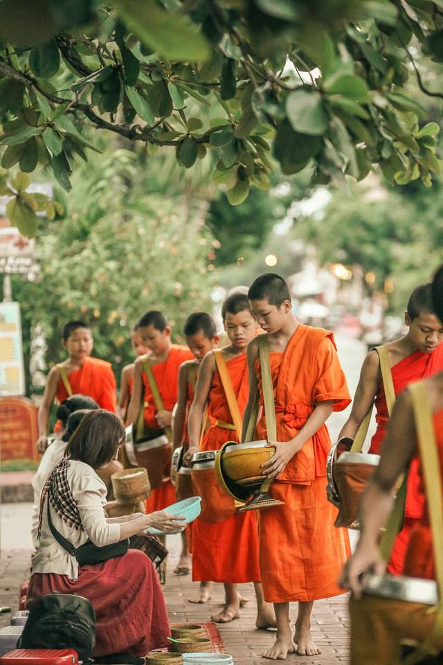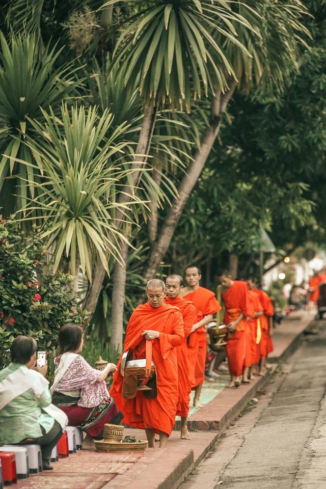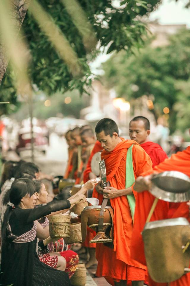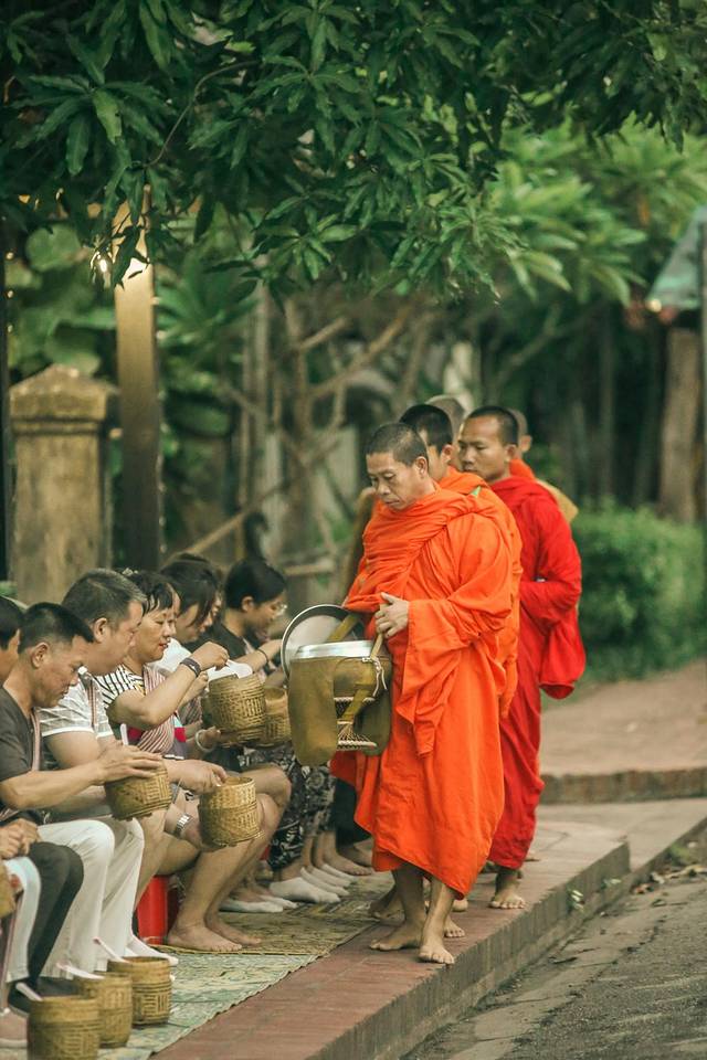 布施是老挝人一天中最重要的事情,而琅勃拉邦的每个静谧的清晨就是由布施掀开的。随着僧人走向大街小巷寻求布施,整个城市也会因此苏醒,千百年来,风雨无阻。